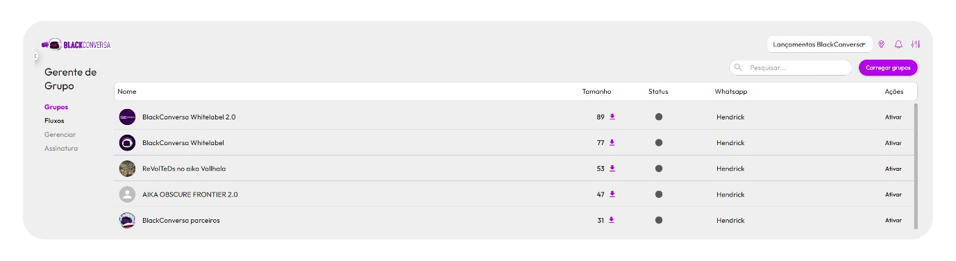Com o nosso gerente de grupos é possível enviar fluxos dentro da ferramenta, Conversar com seus grupos pelo bate papo, fazer lançamentos pelo grupo e muito mais, uma ferramenta completa para tudo o que você precisa.