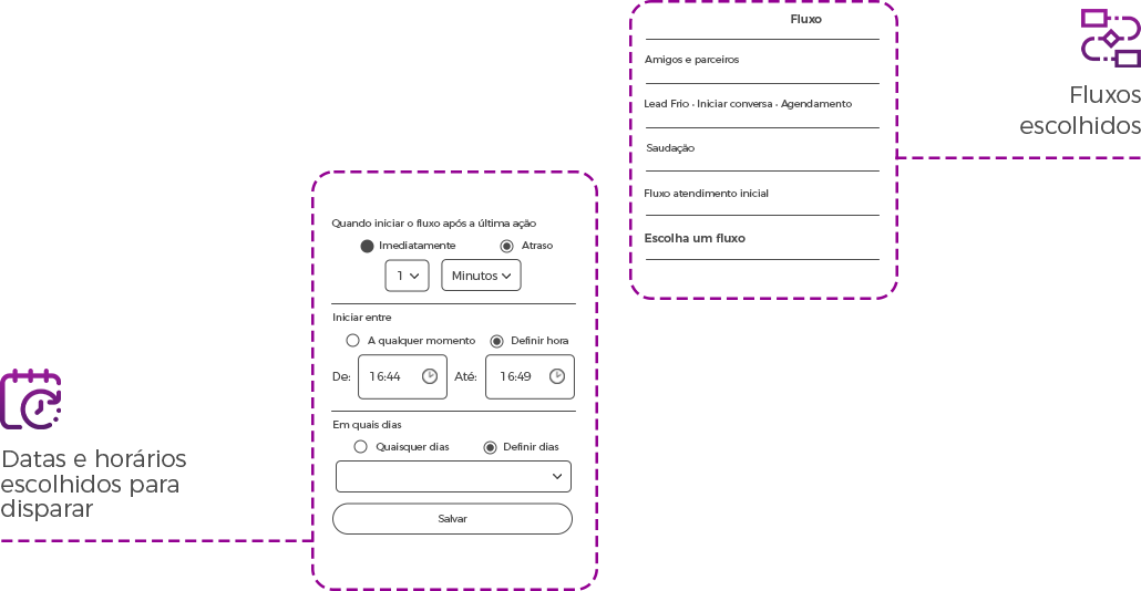 O Remarketing é uma sequência de fluxos que você programa: dia, horário e quais fluxos o seu cliente irá receber.